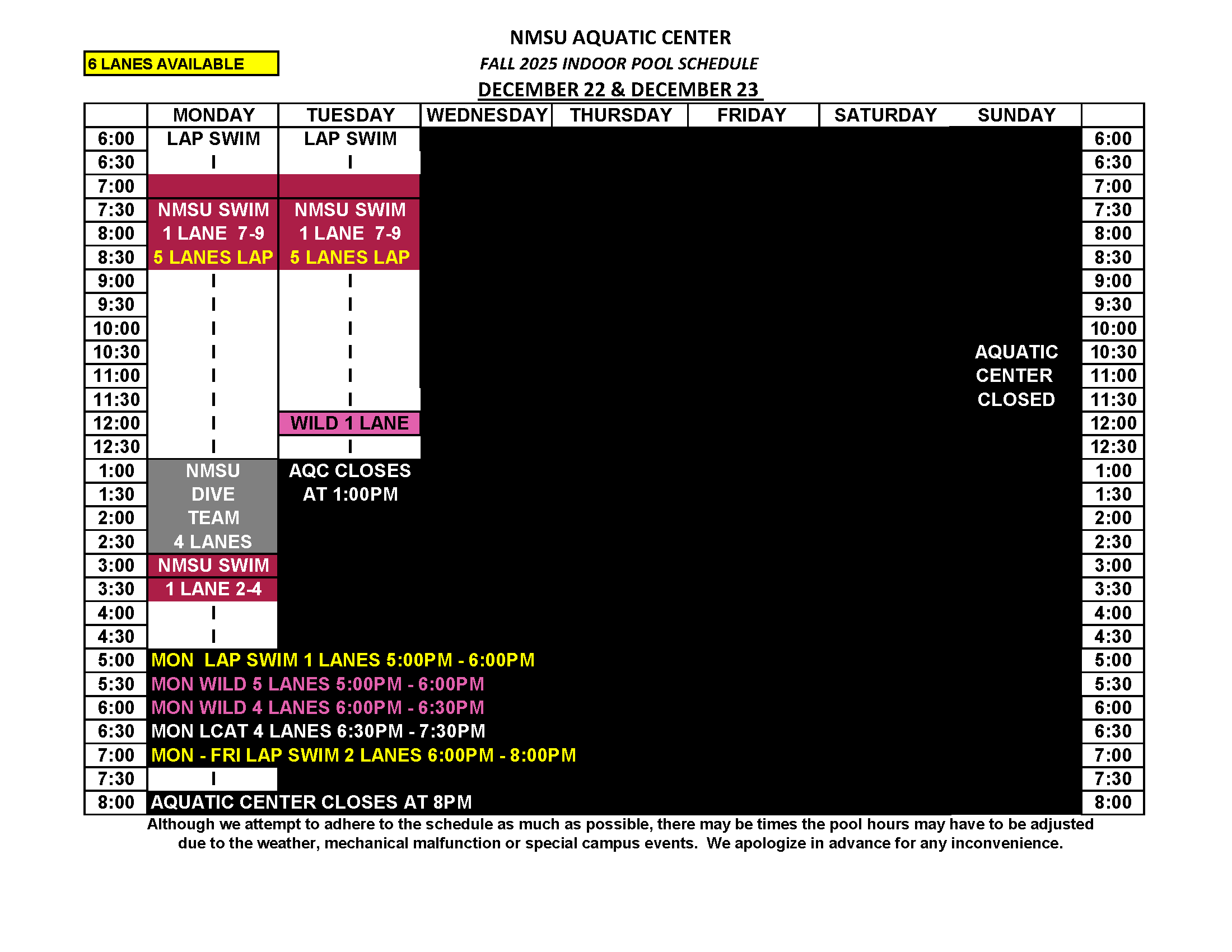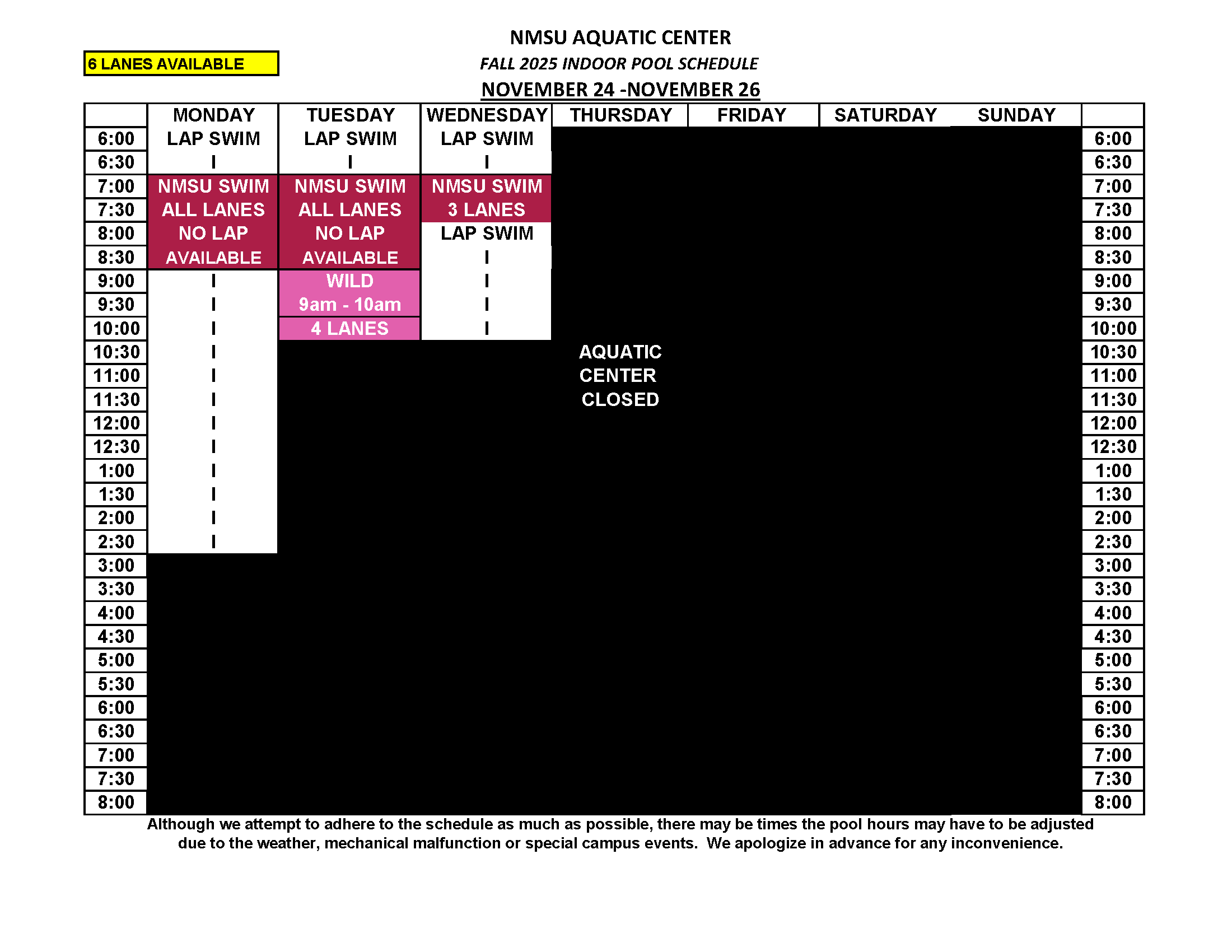 Indoor Pool Schedule